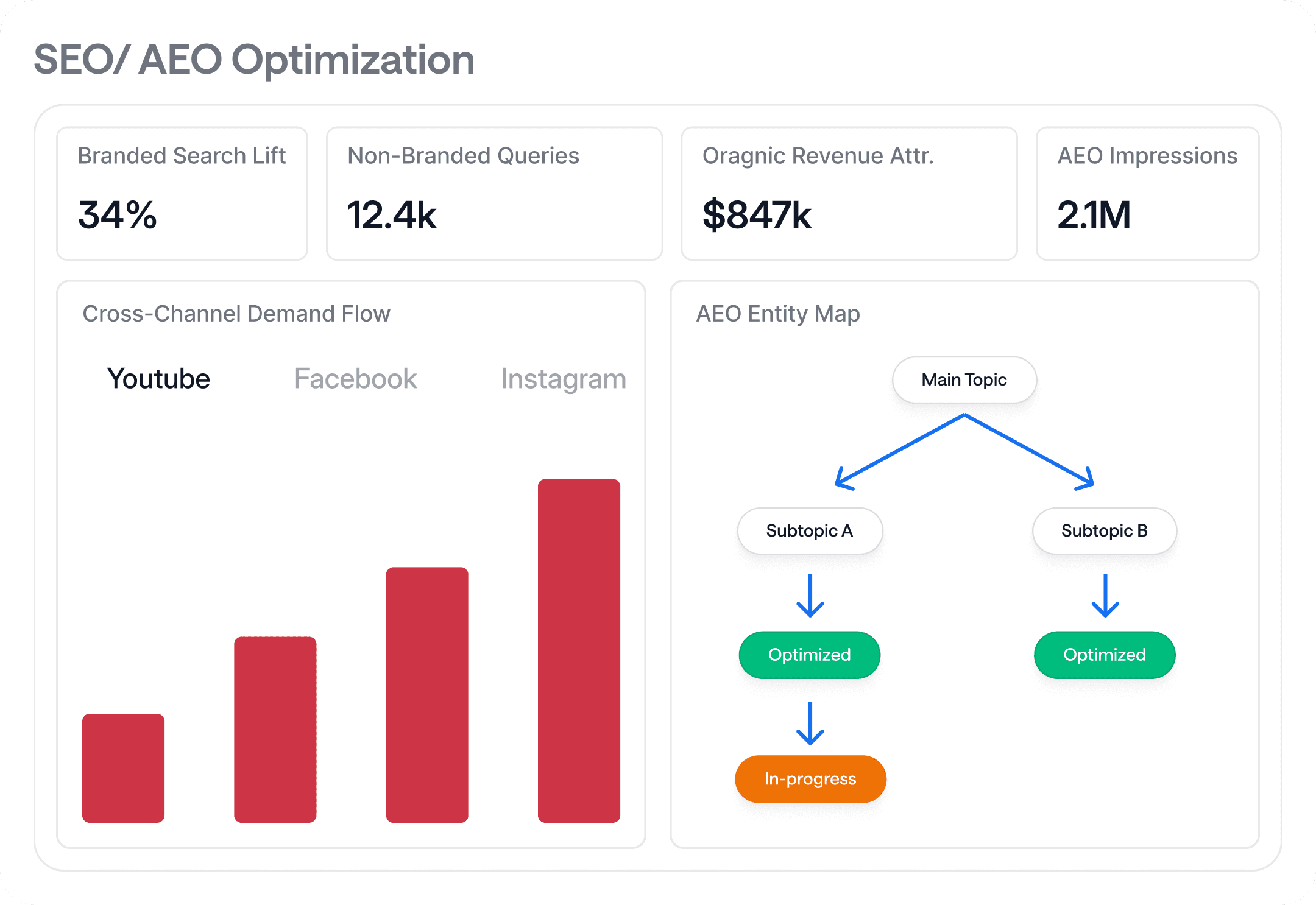 Turn cross-channel signals into search growth - optimize for both Google rankings and AI-generated answers.