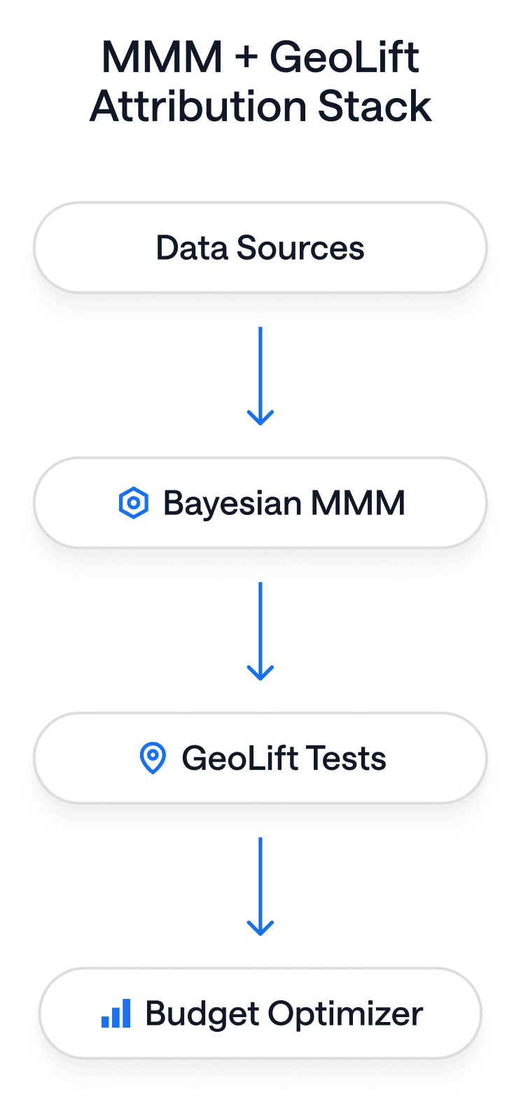 Tooling → BlueAlpha GeoLift wizard + BlueAlpha Bayesian MMM.