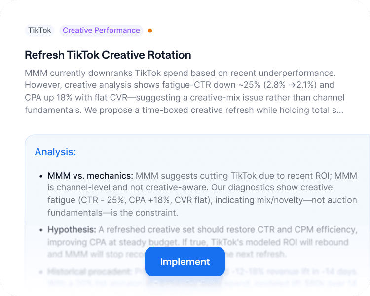 Marketing teams are expected to move faster across more channels with more experiments. The constraint isn't measurement, it's how quickly teams can translate data into confident decisions and execute them.